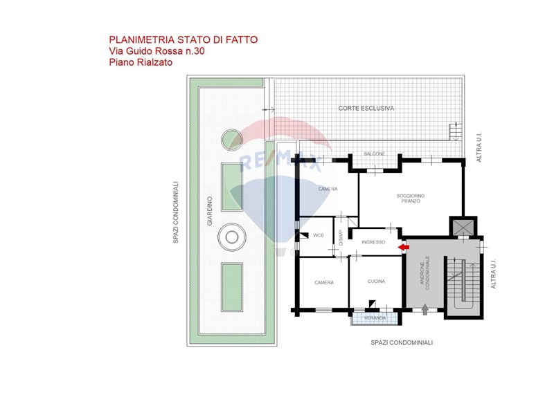 All'interno troviamo un salone doppio e una camera matrimoniale che si affacciano entrambi su un grande balcone che da accesso al giardino esterno, una cucina abitabile con veranda, seconda camera, e un bagno di generose dimensioni, facilmente divisibile per la realizzazione del secondo bagno. Gli ambienti sono ampi, ben distribuiti e versatili, pronti per essere adattati secondo gusti e necessità come ad esempio: un open space, doppio servizio o terza camera che sono tutte soluzioni realizzabili.
