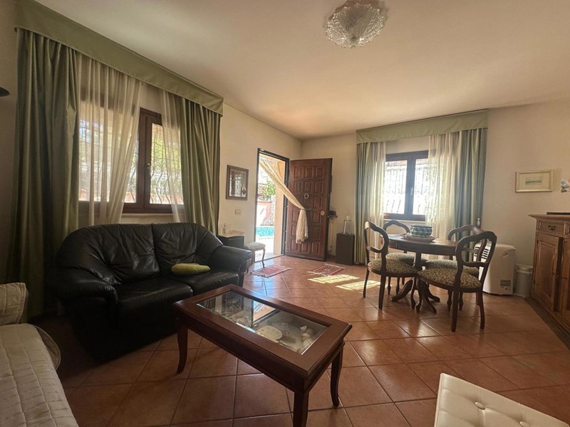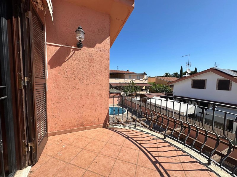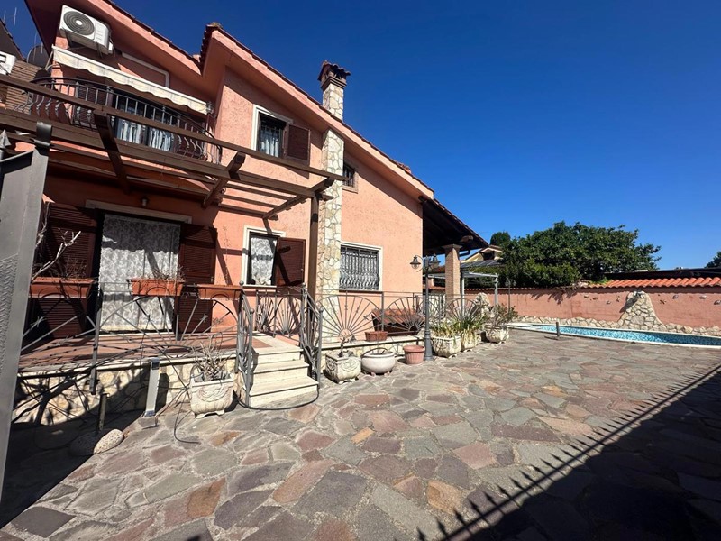 Tor San Lorenzo - Villa a schiera angolare bilivello: soggiorno, cucina abitabile, disimpegno, due camere (una con cabina armadio), doppi servizi e balcone. Più sala hobby di 61 mq con ripostiglio, camino, forno a legna, servizio e chiostrina di 13 mq. Giardino mattonato di 110 mq con piscina privata e due portici di 10 e 16 mq. l'immobile si trova a 200mt dalla fermata Cotral (laurentina-Nettuno), dai principali servizi ed attività commerciali, quali farmacia, posta, bar, etc.)
