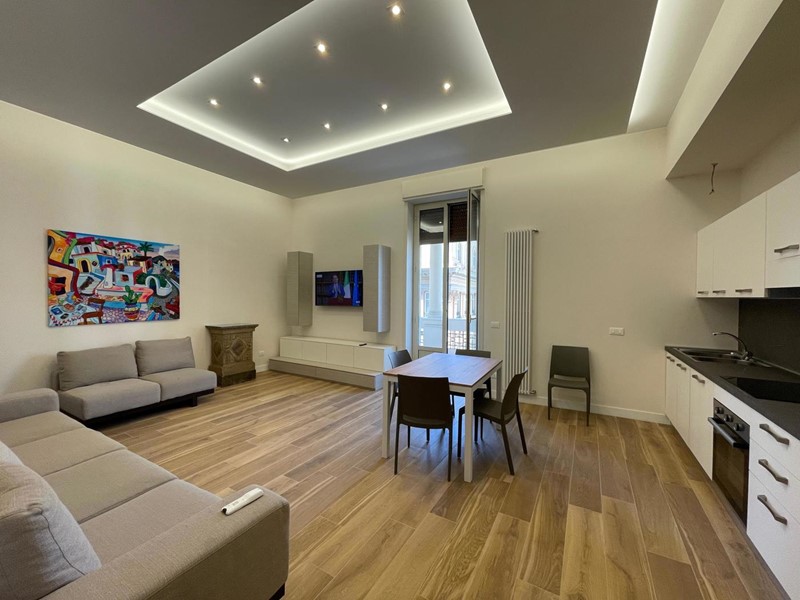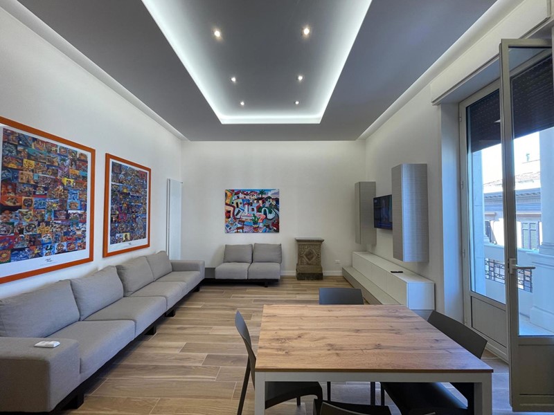 Via Roma 315 - Nuovo ed elegante appartamento arredato, piano 3° difronte le Poste Centrali, prospicente su via Roma, 4 vani + accessori, composto da: salone pari  a 2 vani con angolo cottura con balcone colonnato su via Roma, 2 camere da letto, 2 servizi con doccia di cui uno in camera, ripostiglio/lavanderia, riscaldamento autonomo, pompe di calore, cassaforte, lavasciuga.