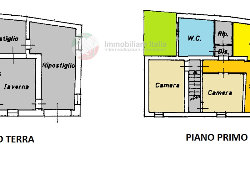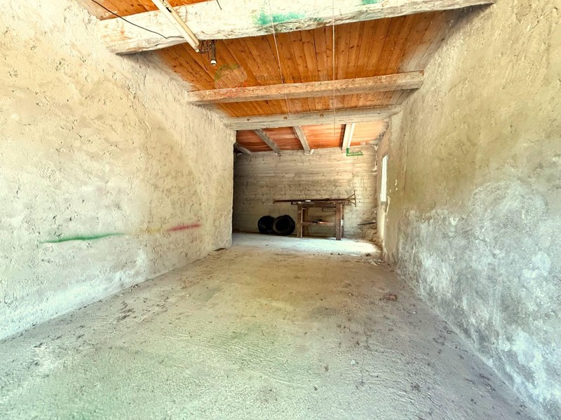 La disposizione degli spazi interni si presenta attualmente con ripostigli e cantina con lavanderia al piano terra e, accessibile tramite scala in muratura, la parte di abitazione vera e propria al piano primo, con 2 camere, bagno e soggiorno con cucina a vista e camino.