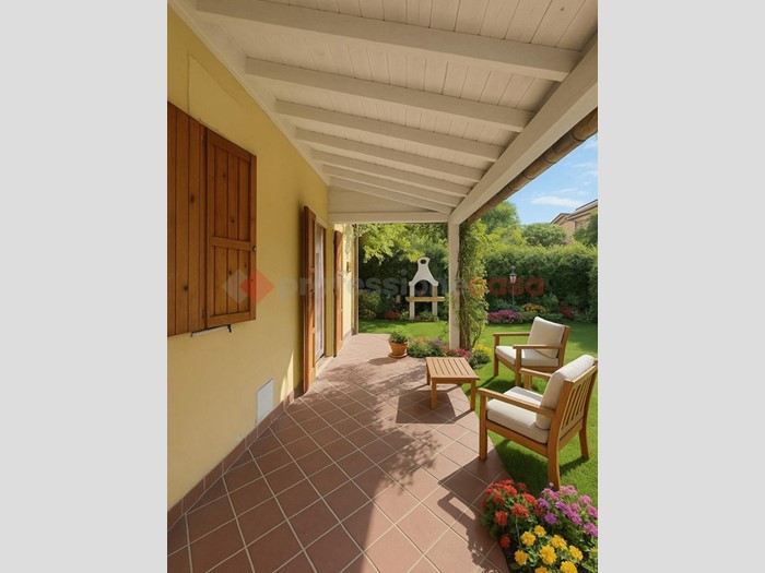 Al piano terra, un ampio portico anticipa l'ingresso principale. Internamente troviamo un ampio soggiorno, una cucina abitabile e un bagno.