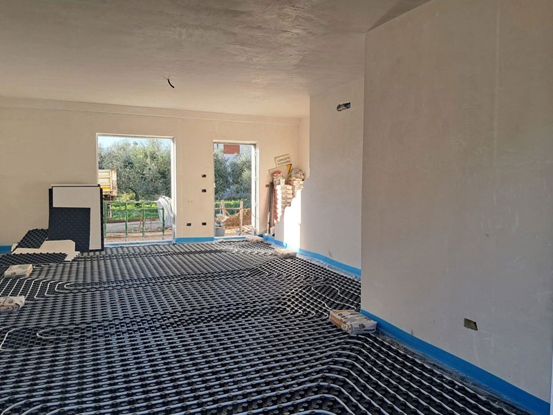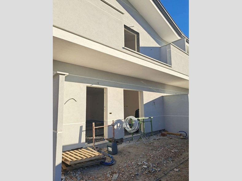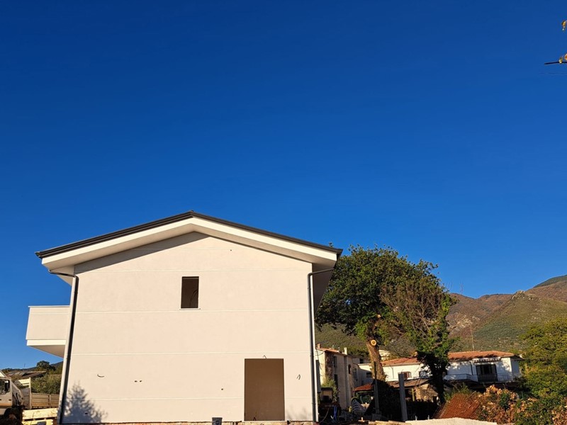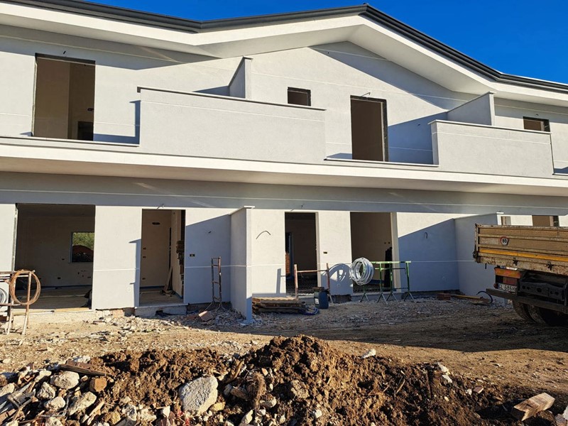 Splendida opportunità di acquisto, Villetta Centrale in schiera di tre. Proponiamo in esclusiva la vendita di una soluzione su due livelli di nuova costruzione. L'immobile si trova nel comune di Cervaro, in zona collinare, residenziale e ben esposta, ed è composto da ingresso in soggiorno living con cucina a vista, bagno e ripostiglio al piano terra, tre camere, bagno e balcone al piano primo. La soluzione dispone di ampia zona antistante pavimentata di circa 80 mq per accesso pedonale e carrabile oltre giardino retrostante esclusivo di circa 50 mq. Utilizzo di materiali a basso impatto ambientale di origine naturale e/o di facile riciclabilità. Elevata coibentazione termica dell'involucro. Elevato comfort abitativo, con l'adozione di sistema radiante a pavimento. Tetto ventilato con pannello termico. Impianto fotovoltaico 3kw. CLASSE ENERGETICA A. Possibilità di personalizzazione.