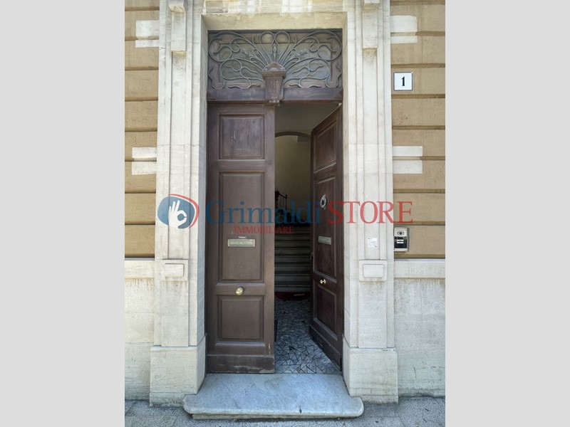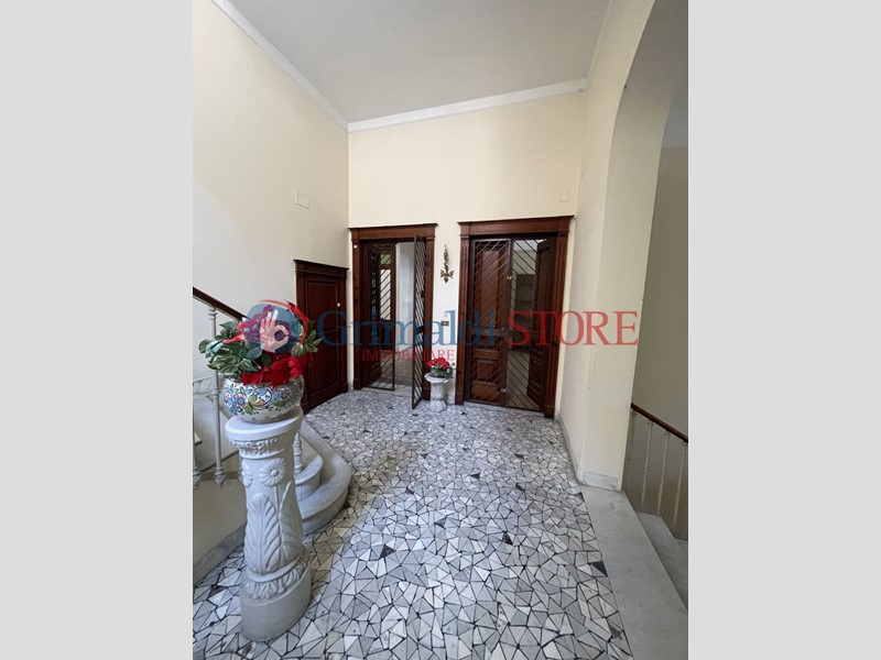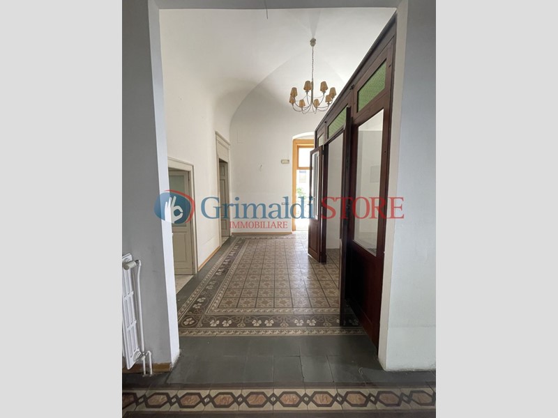 L’immobile presenta un ingresso principale dalla piazza e un secondo accesso laterale indipendente. Al piano rialzato si sviluppano otto ampi vani, oltre ai servizi, per una superficie complessiva di circa 250 m².
