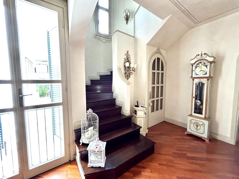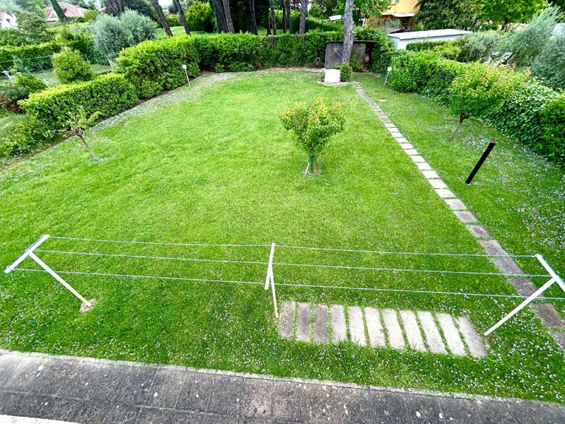 La villa si sviluppa su tre livelli (terra, primo piano e seminterrato), per una superficie complessiva di circa 335 mq, circondata da un giardino esclusivo di circa 1500 mq e dotata di garage, taverna, loggiati, terrazze abitabili e posti auto privati.
