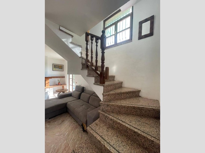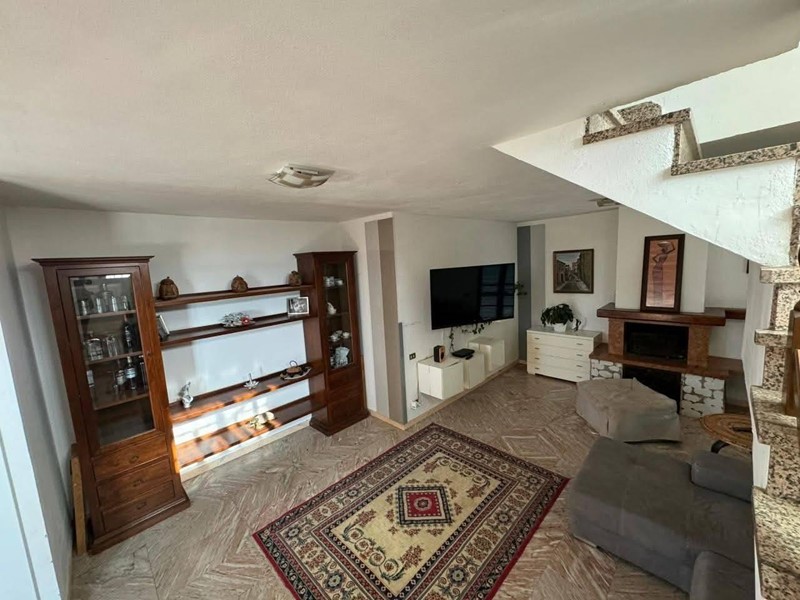 La villa internamente e composto da: cucina abitabile, doppio salone con camino, 3 bagni ( uno cieco con box doccia ,- uno con vasca), 1 camera matrimoniale, 1 camera doppia ed una singola, il tutto disposto su due livelli. Al piano superiore è poi presente una ampia mansarda abitabile con il punto più basso di 1.44 mt