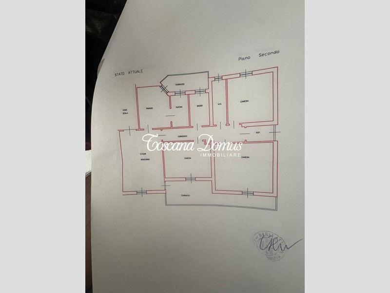 L'immobile,si sviluppa in un unico piano disposto da sala ampia e luminosa che accede ad un grande terrazzo, cucina abitabile con secondo terrazzo, reparto notte suddiviso in tre camere grandi e due bagni finestrati. Ampio ripostiglio.