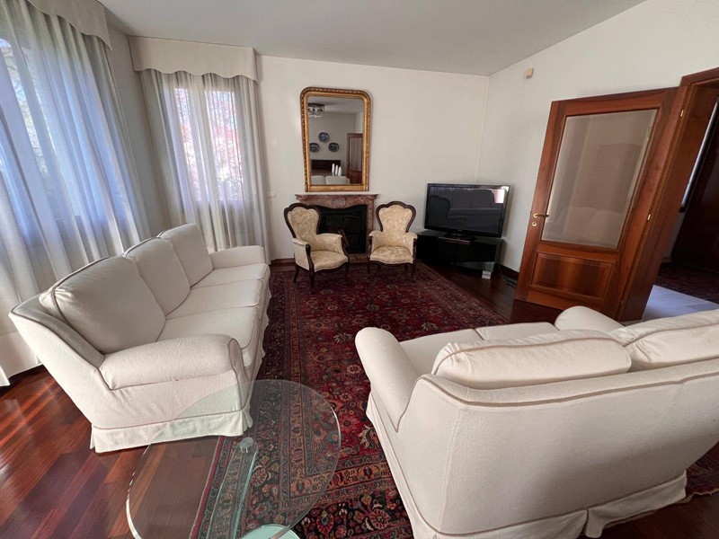 Al piano seminterrato (per buona parte fuori terra), troviamo garage per due auto, cantina, centrale termica, bagno e taverna che dispone di un ulteriore ingresso autonomo. Pertinenziale alla casa bellissimo giardino piantumato di circa 2.500 mq. (ulteriori 3.000 mq. attigui disponibili).