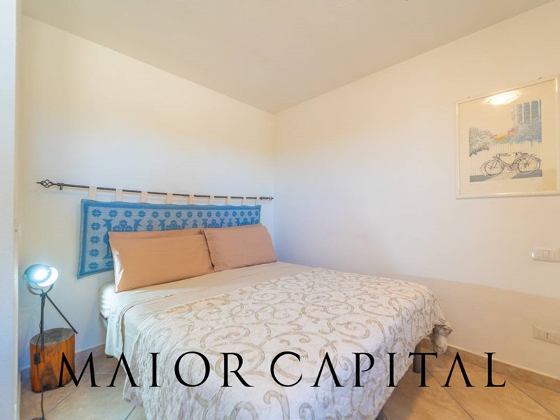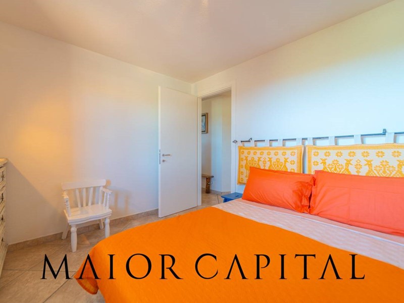 La zona notte comprende una camera matrimoniale, caratterizzata da tonalità delicate, con vista sulla natura circostante, creando un'atmosfera rilassante. Una seconda stanza, ben organizzata e luminosa, gode anch'essa di una vista incantevole su Tavolara. Completano la proprietà due bagni, uno caratterizzato da piastrelle nei toni del mare e laltro decorato con mattonelle dai caldi colori del sole.