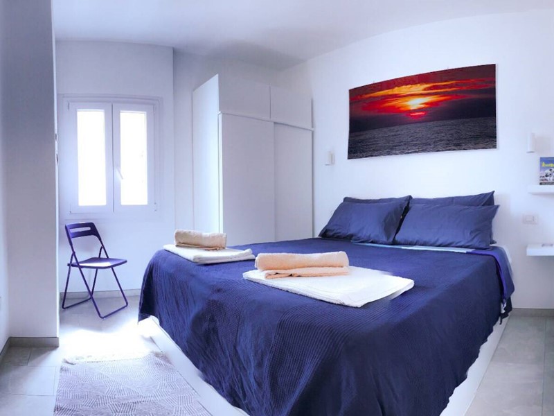 L'appartamento, ristrutturato nel 2019, offre un soggiorno accogliente con angolo cucina e divano letto, una camera matrimoniale e un bagno moderno con doccia e terrazzino abitabile.
