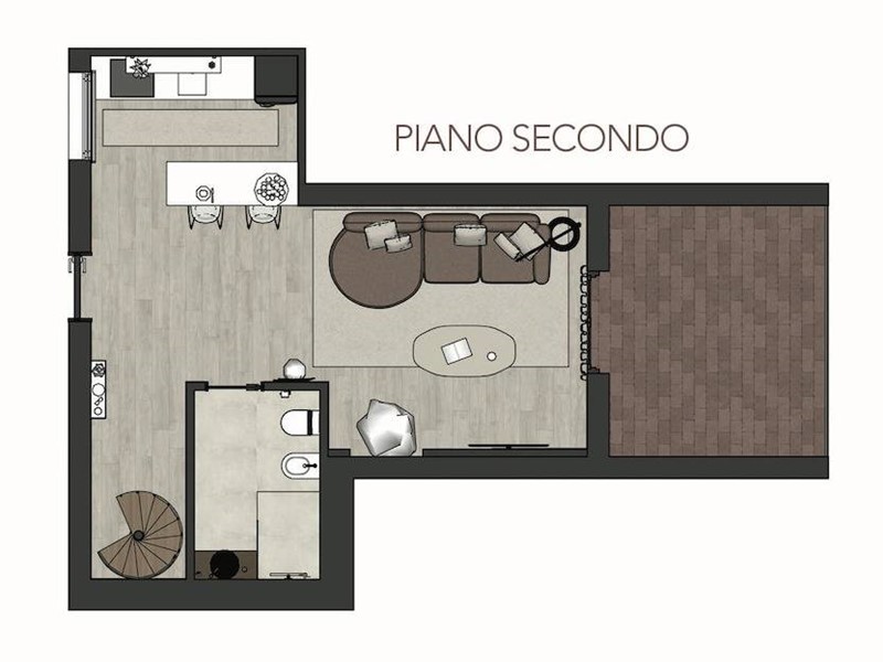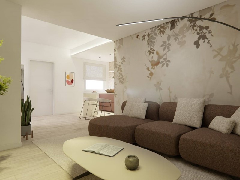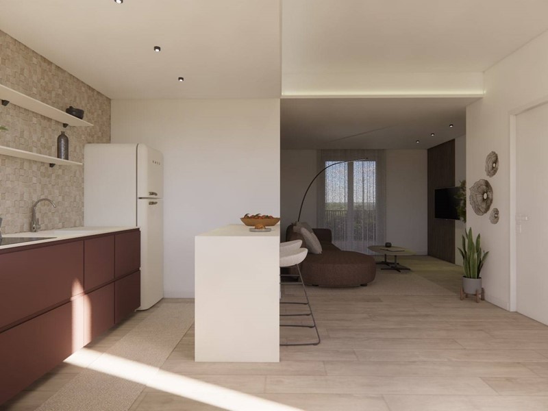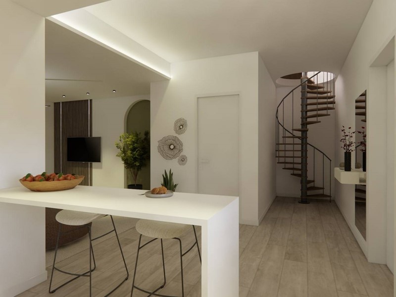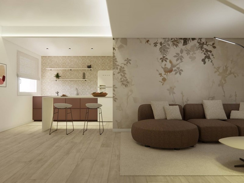 Lingresso si apre su un soggiorno accogliente con cucina a vista, reso particolarmente luminoso da un bel terrazzo abitabile, ideale per pranzi allaperto o momenti di relax.