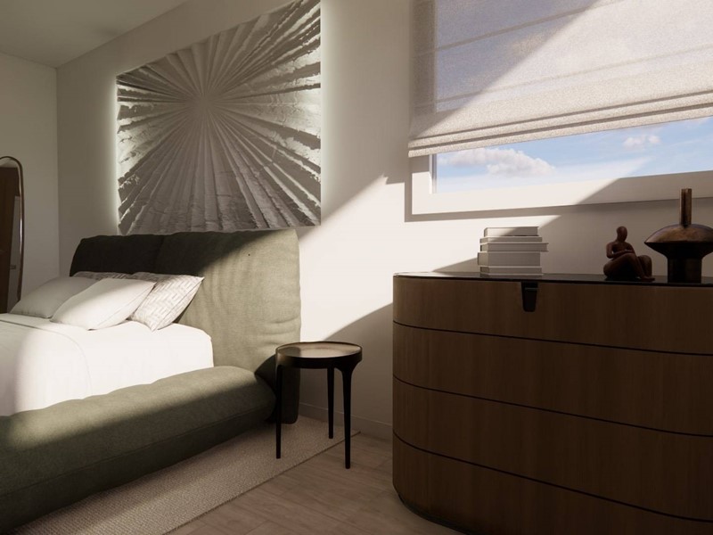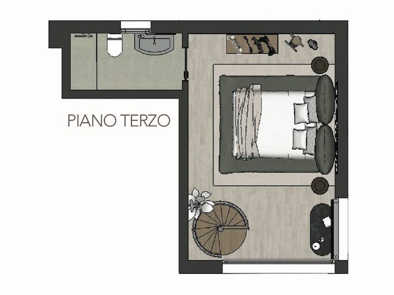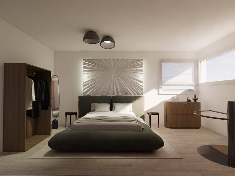 Salendo al piano superiore si trova una graziosa camera matrimoniale con ampie finestre vista mare e un bagno ben rifinito.