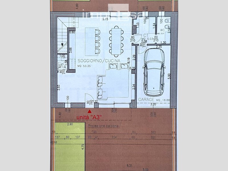 Metratura generosa: ingresso, zona giorno di mq. 45 circa con cucina a vista ma separata, lavanderia/c.t., tre camere, tre bagni e garage singolo più posto auto riservato esterno.