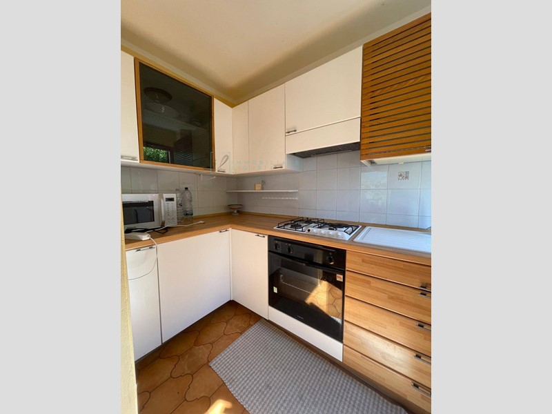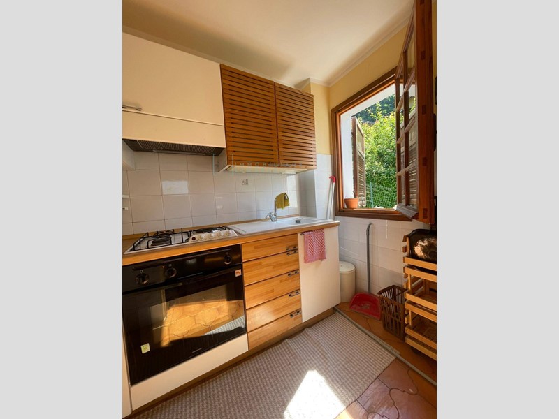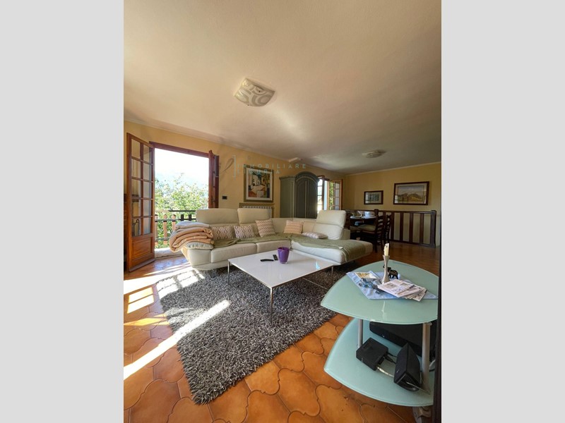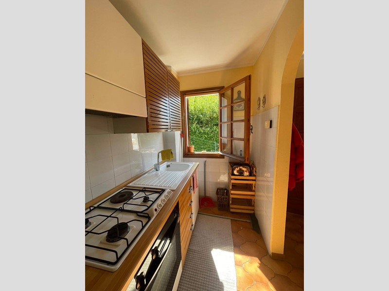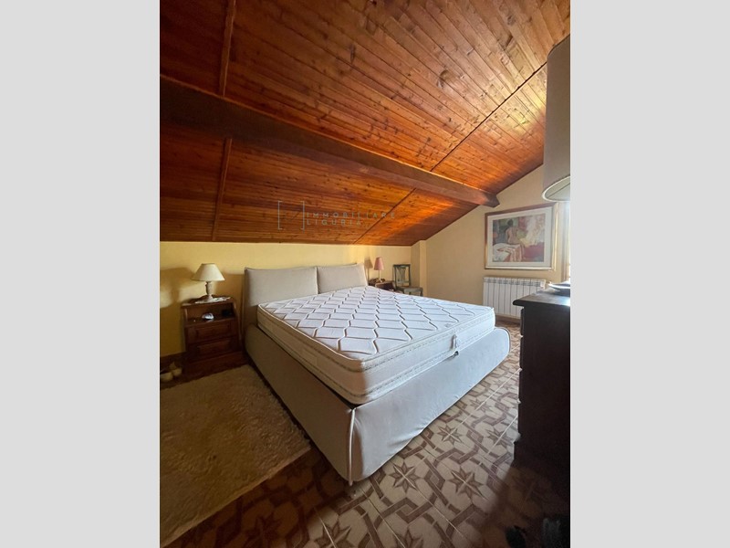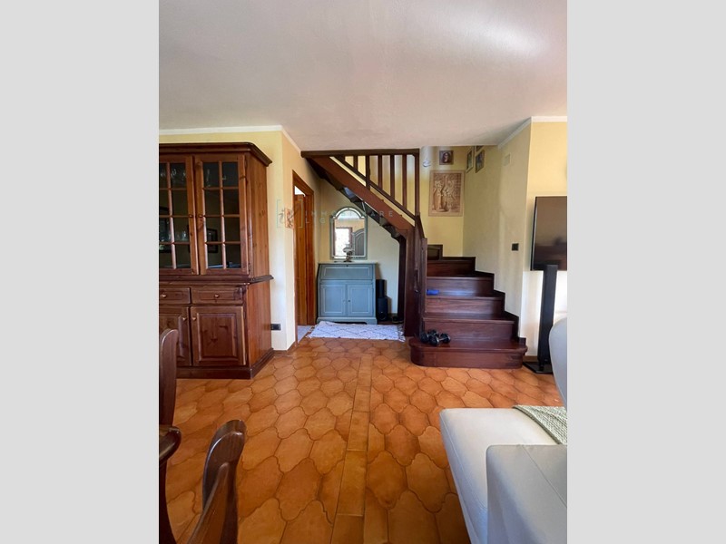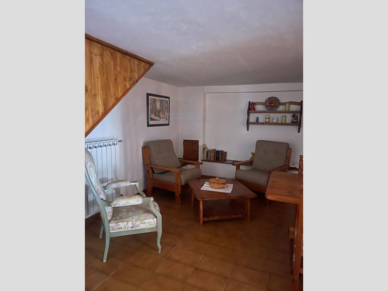 Al piano inferiore si trova un luminoso soggiorno, un cucinotto e un bagno, mentre al piano superiore sono presenti due camere da letto e un ulteriore bagno, completano la proprietà due balconi con vista panoramica.