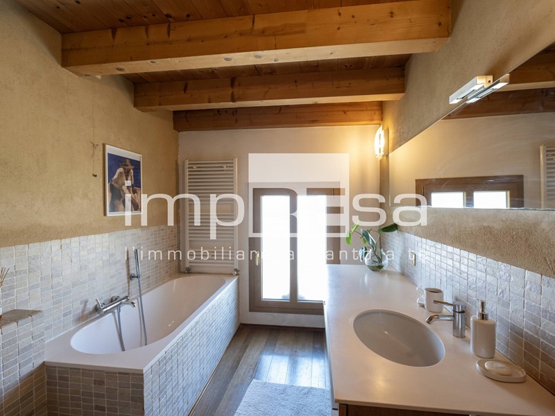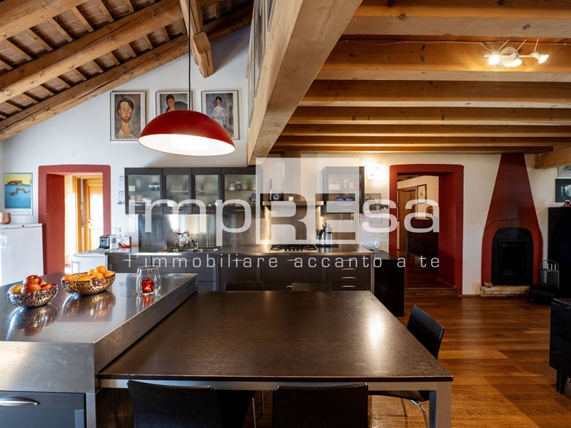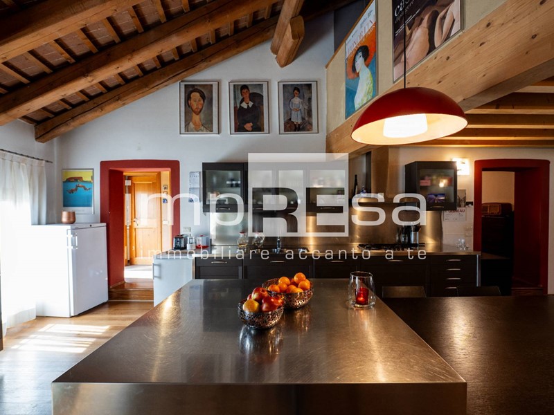 Al piano primo troviamo l'ingresso, soggiorno di oltre 60 mq con due camini di cui uno storico, cucina a vista, soppalco con zona relax, bagno di servizio, studio, lavanderia, camera matrimoniale, terrazza e camera padronale con bagno privato. Al piano superiore è presente un'ulteriore camera matrimoniale soppalcata.