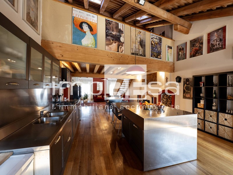 Il soffitto in zona giorno è alto 5 metri, accentuando così la storicità dell'appartamento.
