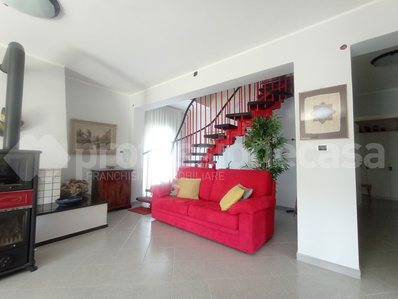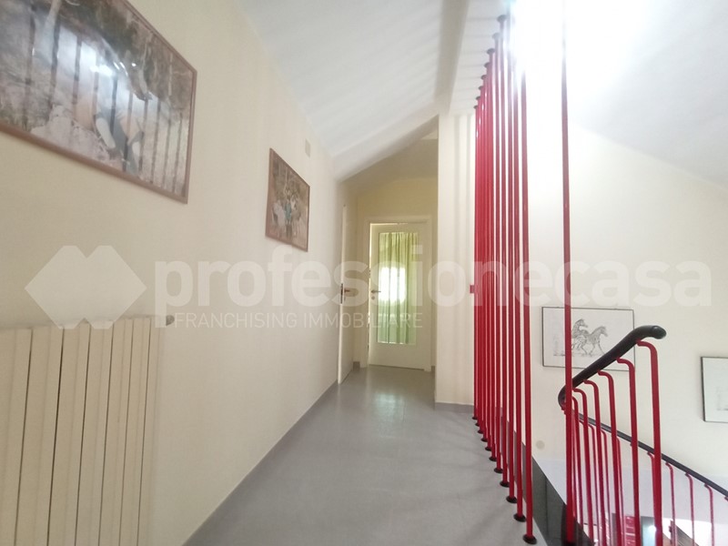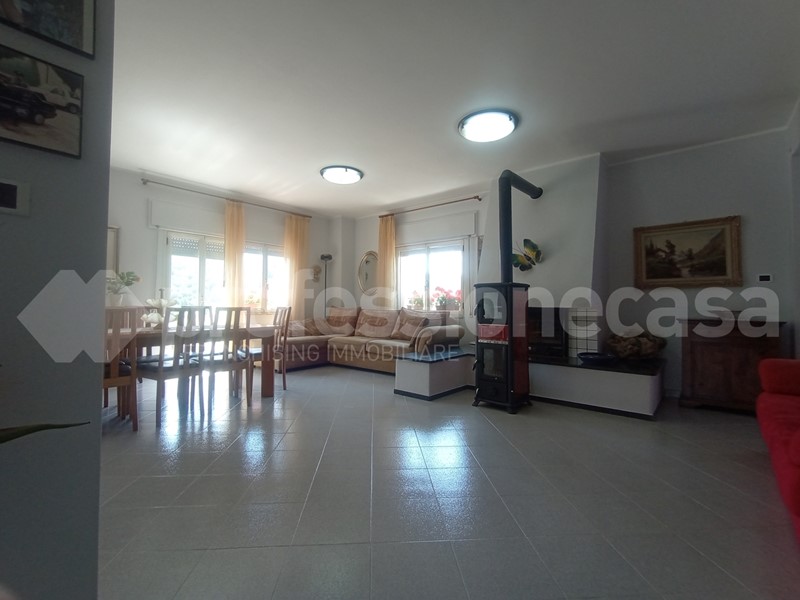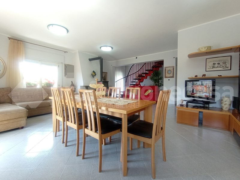 L'immobile è composto da ingresso su doppio soggiorno con camino, cucina abitabile, quattro camere da letto, una camera di servizio, due bagni.