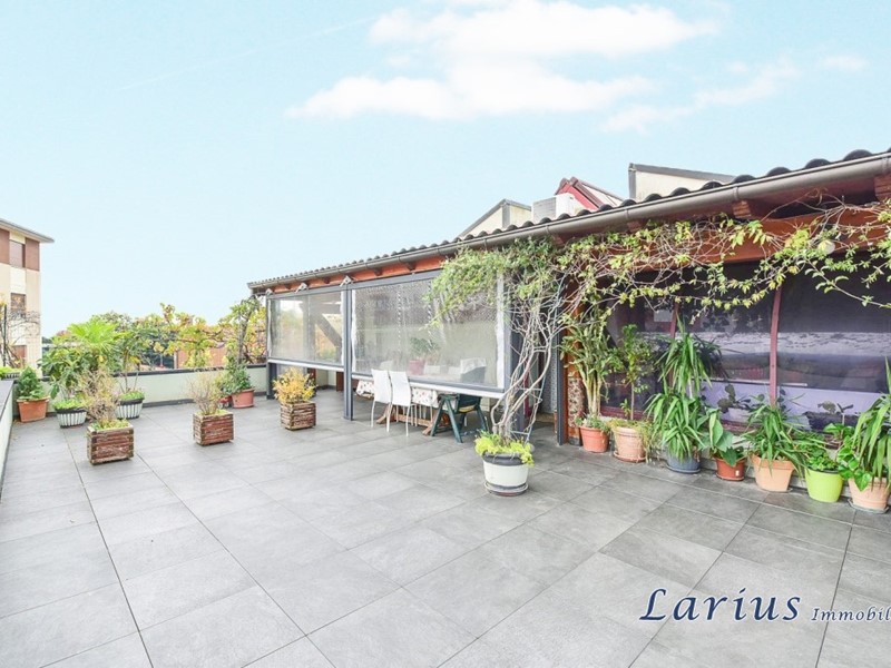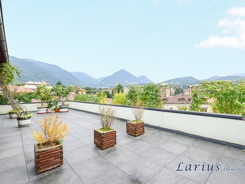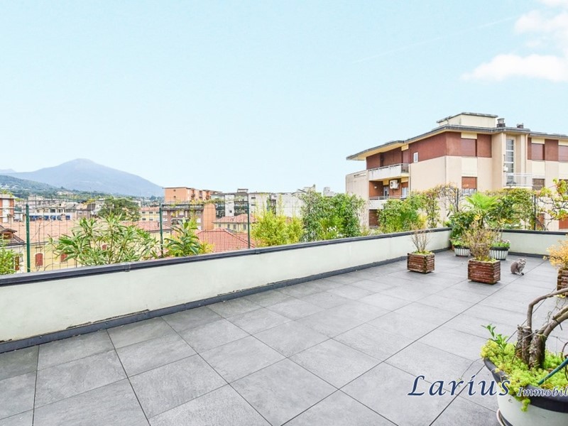 In centro ad Erba, in signorile contesto, Larius propone in vendita uno splendido attico di 176 mq c.a. con annesso esclusivo terrazzo di c.a. 90 mq con vista strepitosa sulle Grigne e Corni di Canzo oltre 2 box auto, cantina e posti auto condominiali. \nL'abitazione si sviluppa su due livelli abitativi collegati da scala interna al terzo e al quarto ed ultimo piano di una elegante palazzina di poche famiglie risalente ai primi anni 2000. \nL'appartamento al piano terzo ospita la zona notte ed è composto da quattro ampie camere da letto, di cui una camera padronale, due bagni, locale lavanderia, oltre balconi di circa 30 mq. \nAl quarto ed ultimo piano, dove la luce naturale è la protagonista indiscussa, troviamo l'ampia zona giorno con terrazzo panoramico di c.a. 90 mq e comprende: soggiorno doppio, grande cucina, un servizio. \nAmbienti molto ampi e versatili, luminosi e finiture risalenti all'epoca costruttiva conservati in perfette condizioni. \nLibero entro 8 mesi dal rogito notarile\nE' gradita la permuta del tuo immobile.\n - Maggiori Dettagli: Tetto in ordine, Travi a vista, Lavanderia, Cantina, Finiture originali, Cucina a vista, Cancello automatico, Parquet zona notte, Infissi alluminio doppio vetro, Tapparelle, Porta blindata, Vista panoramica , Vista panoramica su monti, Fermata bus nelle immediate vicinanze, Servizi di primaria necessità nelle vicinanze, Stazione ferroviaria nelle immediate vicinanze, Scuole, Farmacia