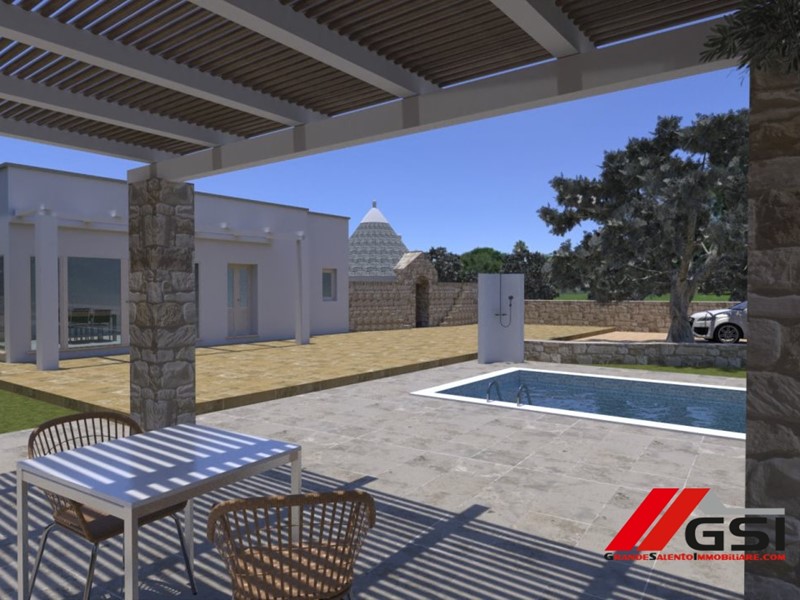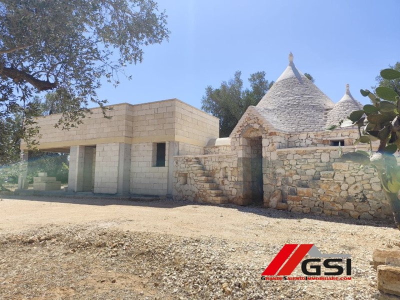 La proprietà in vendita è un'autentica perla dell'architettura rurale pugliese, immersa nella quiete della campagna di Contrada Ajeni, a San Michele Salentino.\n\nIl cuore della proprietà è un trullo originale, sapientemente ristrutturato nel rispetto della sua struttura storica e delle caratteristiche architettoniche tipiche, come le volte a cono in pietra a vista. L'intervento conservativo ha valorizzato ogni dettaglio, restituendo il fascino autentico di un tempo senza alterarne l'identità.\n\nAccanto al trullo, è stato realizzato un ampliamento moderno, costruito seguendo le normative edilizie attuali, con particolare attenzione alla qualità strutturale e al comfort abitativo. L'intera costruzione è dotata di vespaio areato sia sotto che sopra, per garantire una perfetta salubrità degli ambienti e una maggiore durabilità nel tempo.\n\nLe volte tipiche a botte impreziosiscono gli spazi interni dell'ampliamento, creando un perfetto connubio tra tradizione e contemporaneità. Inoltre, l'edificio è già predisposto per l'isolamento termico, rendendo l'abitazione efficiente dal punto di vista energetico. Il solaio rinforzato permette l'installazione di pannelli solari, offrendo così un ulteriore potenziale in termini di sostenibilità.\n\nIl tutto è immerso in un terreno di proprietà che circonda l'immobile, caratterizzato da ulivi secolari e alberi da frutto, che donano privacy, ombra e un contesto naturale di rara bellezza. All'esterno, un ampio porticato si affaccia sul giardino, ideale per godere del relax all'aperto nelle giornate di sole o per creare uno spazio conviviale.\n\nLa proprietà è allo stato grezzo avanzato, un grande vantaggio per l'acquirente, che potrà personalizzare le finiture interne secondo i propri gusti e necessità, trasformandola in una dimora privata esclusiva o in una struttura ricettiva di charme.\n\nÈ inoltre possibile realizzare una piscina, grazie agli ampi spazi disponibili e alla conformazione del terreno. Questa opportunità rende la proprietà particolarmente interessante anche per un uso turistico, data la forte domanda nella zona per residenze di pregio immerse nella natura.\n\nIn sintesi, si tratta di una soluzione ideale per chi desidera vivere o investire in Puglia, combinando tradizione, comfort moderno e grande potenziale progettuale in una location strategica e tranquilla. - Maggiori Dettagli: Terreno, Campagna, Camino