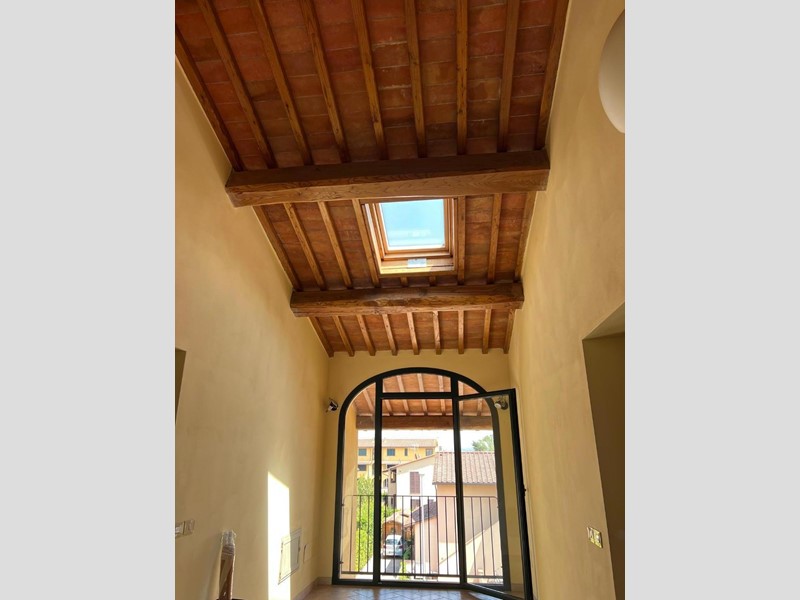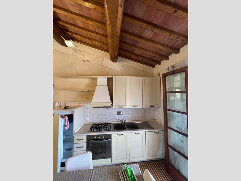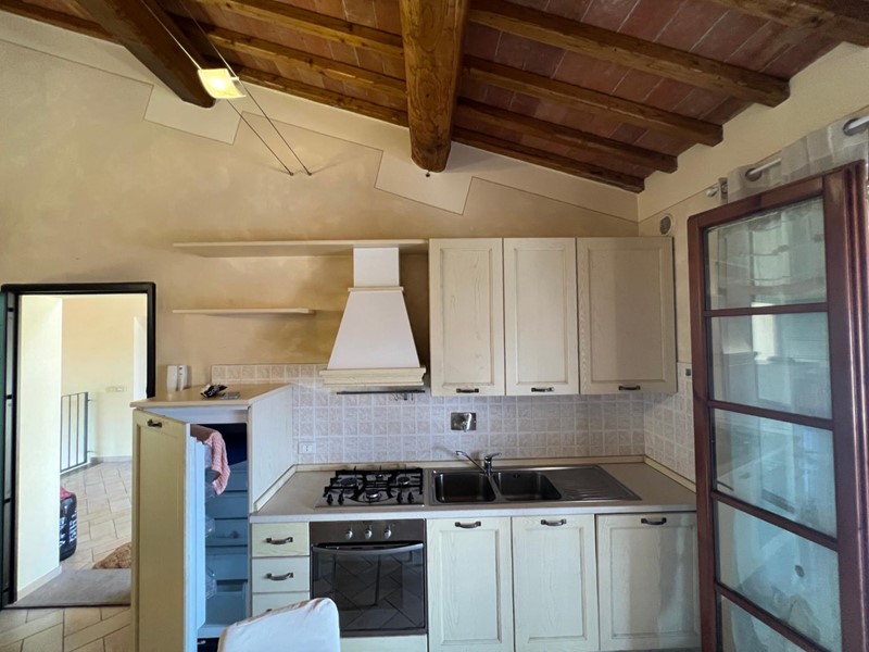 Fornacette - NOSTRA ESCLUSIVA - Nella lottizzazione "Antica Toscana" proponiamo un bellissimo appartamento posto al secondo ed ultimo piano di una palazzina costruita nel 2010 in stile rustico toscano, con soffitti spioventi in travi e travicelli di castagno e mezzane in cotto, molto belle tutte le finiture. L'appartamento ha una superficia di circa 76 mq. ed è composto da ingresso in soggiorno con angolo cottura dal quale si accede a una comoda terrazza coperta adatta per momenti di relax e pranzi e cene all'aperto, disimpegno notte, con un grande armadio a muro, camera matrimoniale, cameretta e bagno. Completano la proprietà un soppalco posto sopra il disimpegno che risulta essere un comodissimo ripostiglio, una cantinetta/lavanderia/ripostiglio al piano terra con porticato esclusivo antistante (per alloggio moto e scooter) e un comodo posto auto coperto. L'appartamento è climatizzato. AFFARE !!! Classe energetica "D". Richiesta € 190.000 tratt. - Rif. 1475