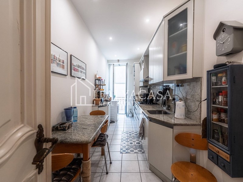 Gli ambienti interni, curati con grande attenzione ai dettagli, mantengono il fascino dello stile classico, con finiture originali di pregio: porte laccate depoca, pavimenti in parquet in ottimo stato, marmo posato in più stanze e armadi a muro su misura che coniugano estetica e funzionalità.