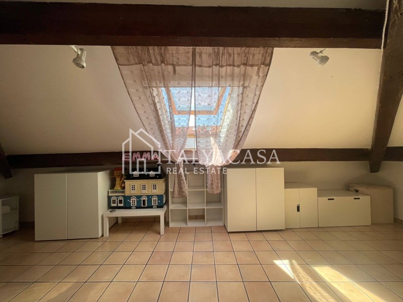 La zona notte si trova al piano superiore, mansardato, dove si sviluppano due camere da letto, un secondo bagno e una comoda zona usata come ripostiglio. Gli ambienti sono accoglienti e ben illuminati grazie allottima luminosità naturale che caratterizza lintera abitazione.