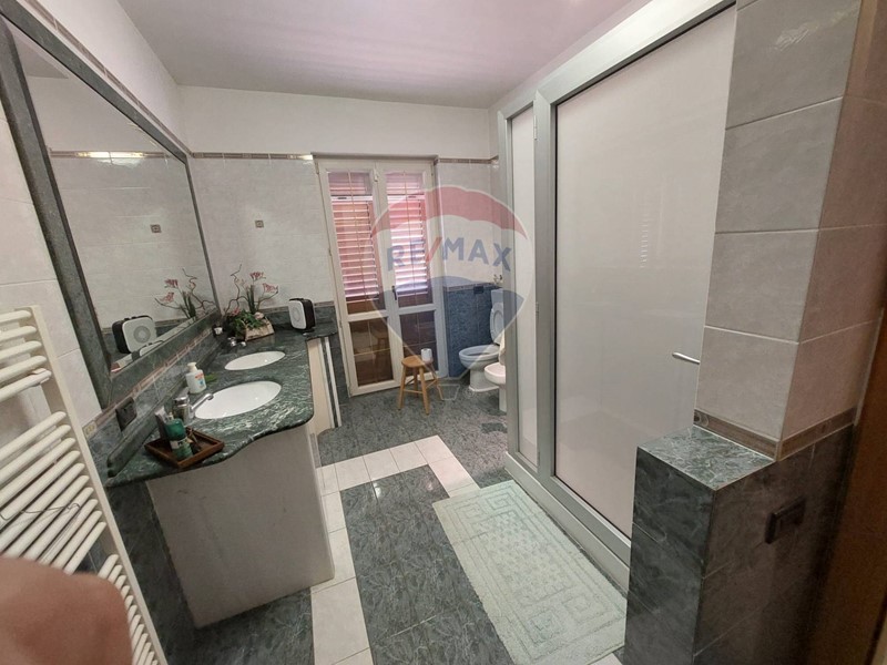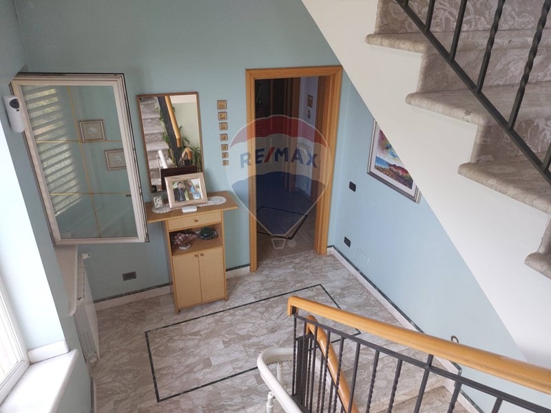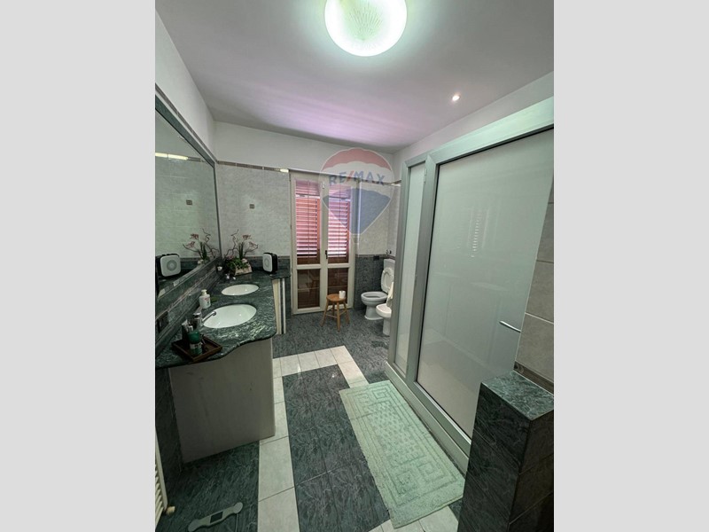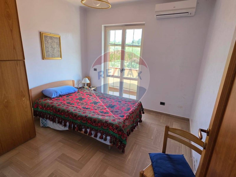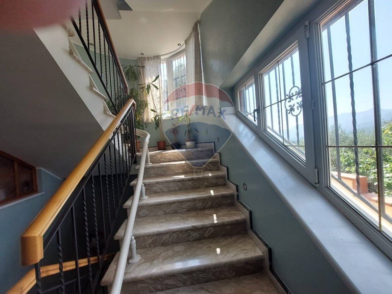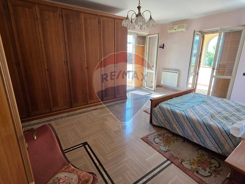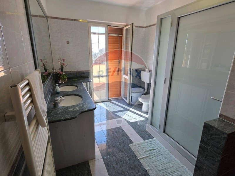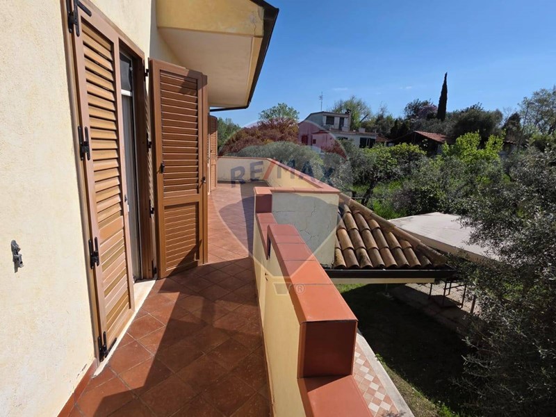Salendo al primo piano, tramite una comoda scala interna, troviamo ulteriori due camere da letto, entrambe con bagno privato, e ampio balcone con vista panoramica sul litorale e sulle colline e monti circostanti.