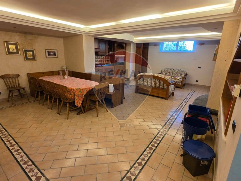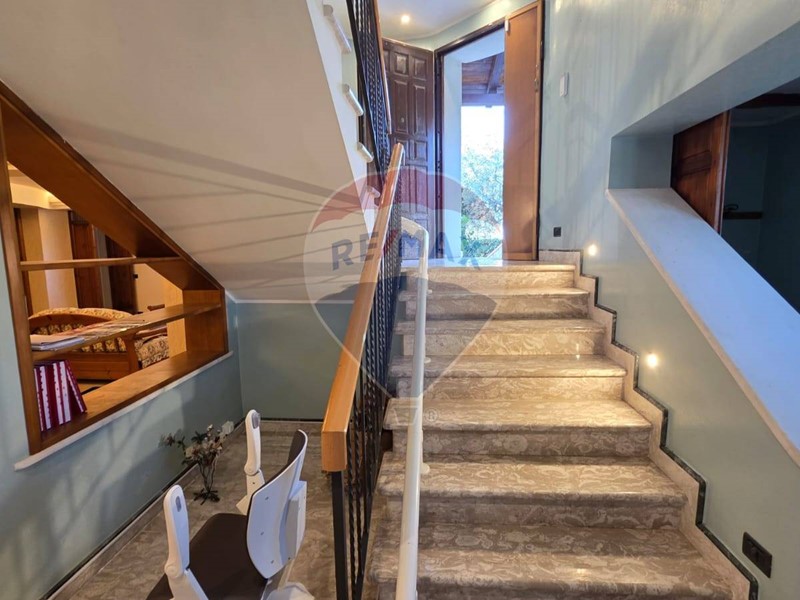 L'ingresso principale conduce al piano terra, dove si trovano un ampio salone con camino e una cucina a vista completamente arredata e dotata di tutti i comfort.