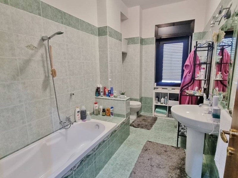La zona notte è composta da due camere da letto, entrambe di generose dimensioni, e due bagni dotati di box doccia e di vasca.