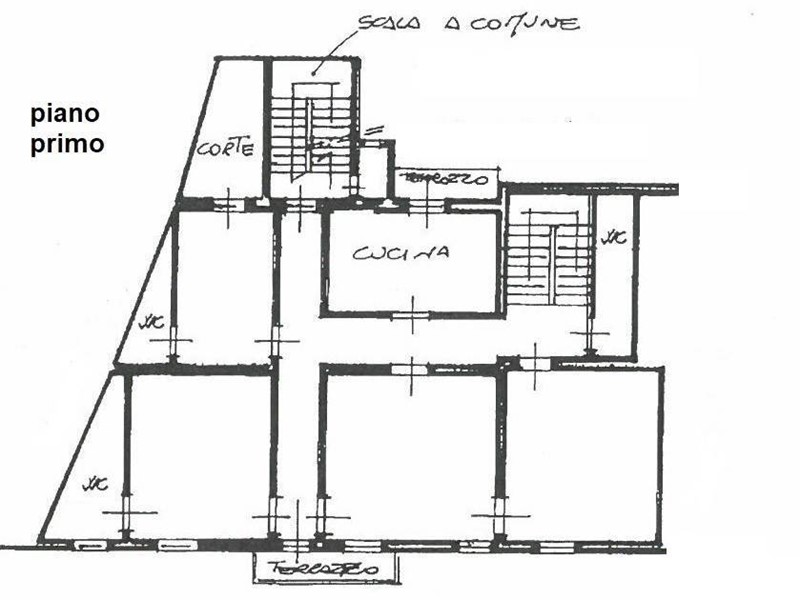 Rif. 1405 - Montespertoli = Centrale. A due passi dal centro del paese, disponiamo di prestigioso appartamento della superficie di mq 170 ca. composto da 5 vani e con giardino privato di mq 250 ca. L' immobile è posto al Piano Primo, in una palazzina signorile e ben curata, senza la presenza dell' ascensore. Entrando si accede all' ampio ingresso a due al piano terreno e al vano scala che conduce ai piani sovrastanti. Al Piano primo si trova un ampio salone ad uso soggiorno con balcone che si affaccia sulla piazza principale, la cucina è abitabile e possiede un balcone che gode di una splendida vista sul giardino privato. Le camere da letto sono tre tutte matrimoniali, L' appartamento è inoltre dotato di un locale ripostiglio oltre a due disimpegni a tre bagni-wc e ad un locale cantina al piano seminterrato. L' appartamento si trova in buono stato e troviamo in tutta la casa pavimentazione in cotto e graniglia di marmo con pareti e soffitti affrescati. L' appartamento è libero da subito e si presta con facilità ad essere suddiviso in due unità immobiliari e ad accogliere così due nuclei familiari.
