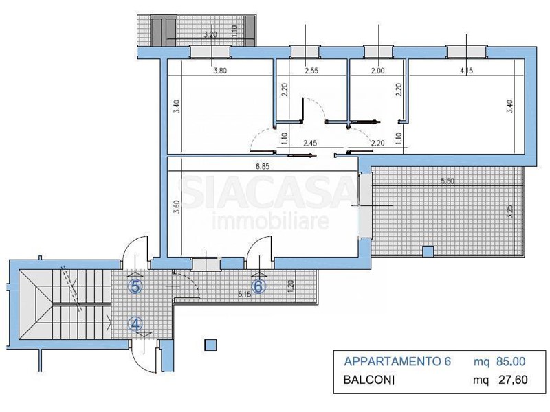 Trilocale con terrazzo e doppi balconi 85 mq interni + 24 mq di sfoghi esterni