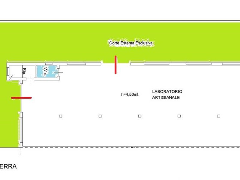 composto da locali produttivi al piano terra di 280 mq. e appartamento con 2 camere da letto al primo piano di 90 mq.