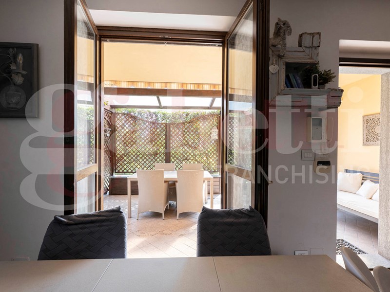 Dal giardino antistante ed attraverso il patio si accede all'abitazione così composta: