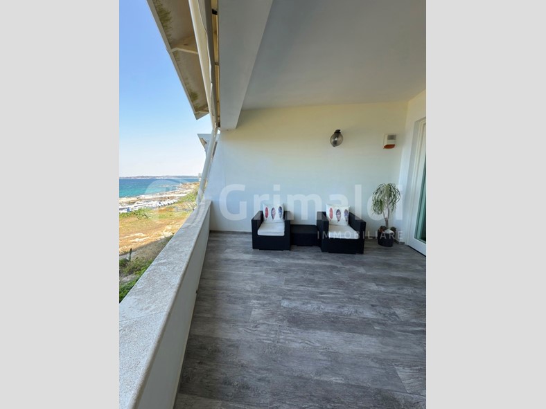 L'ampia zona giorno, ariosa con cucina a vista, regala un'affascinante vista panoramica sul mare, con l'orizzonte che si apre davanti agli occhi.