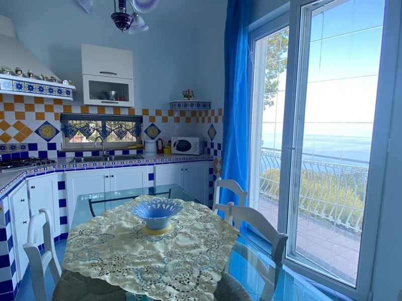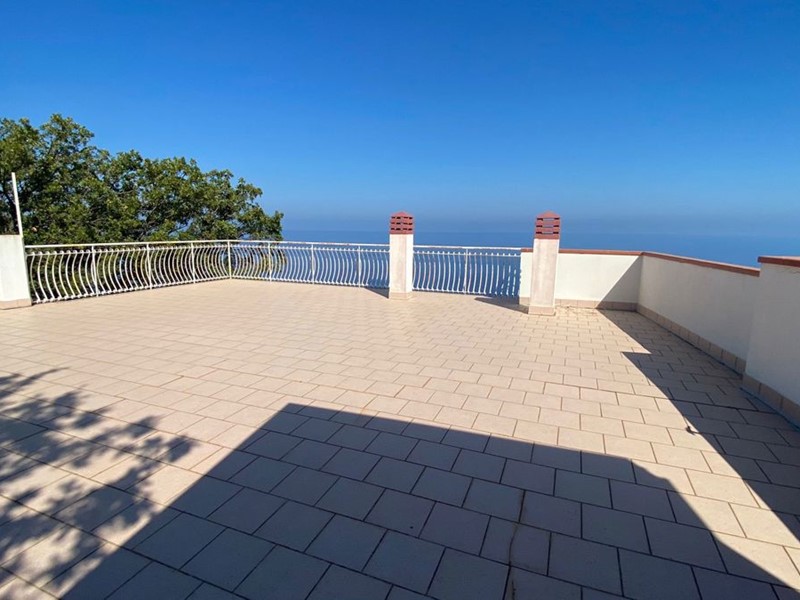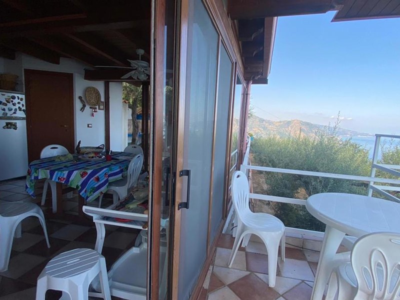 Uno dei punti di forza di questa villa è il suo spettacolare terrazzo panoramico, un vero angolo di paradiso dove il tempo sembra fermarsi. Da qui, lo sguardo si perde nell'immensità del mare, abbracciando l'orizzonte e le meravigliose Isole Eolie, che emergono come perle dal blu profondo. Un luogo perfetto per sorseggiare un caffè all'alba, godersi un aperitivo al tramonto o semplicemente lasciarsi cullare dalla brezza marina.