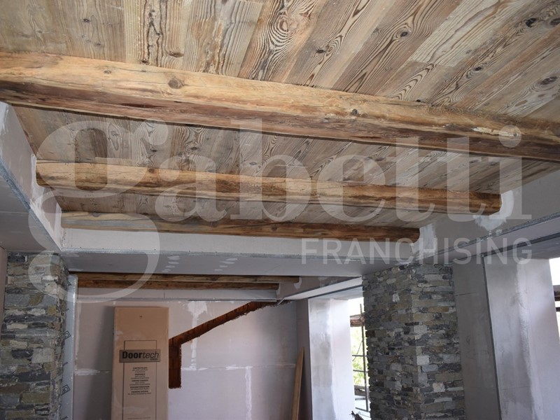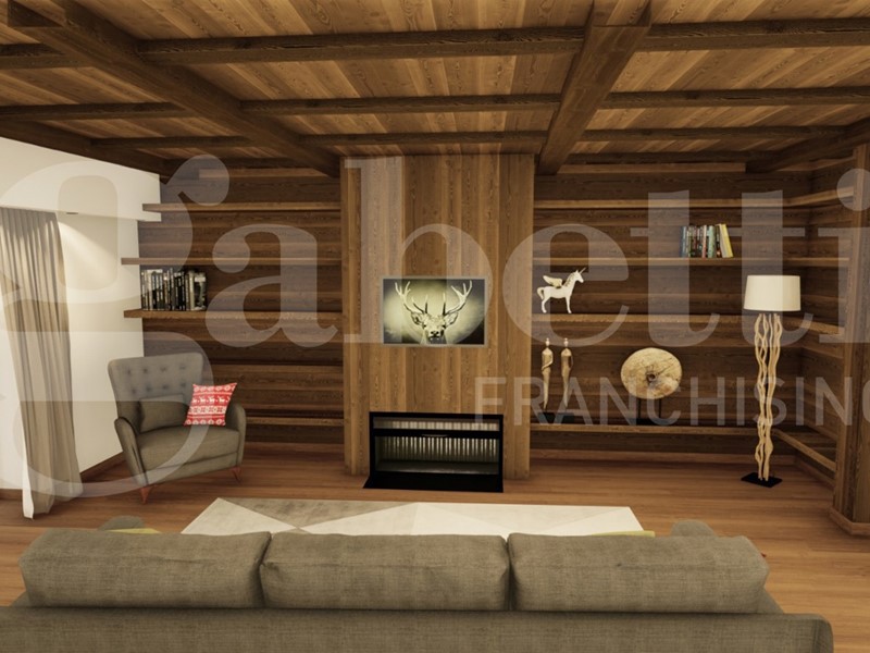 In Baita di nuova costruzione, realizzata in tipico stile montano, con tetto in lose e esterni in legno e pietra,