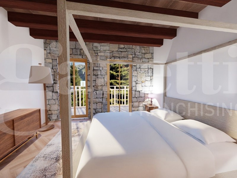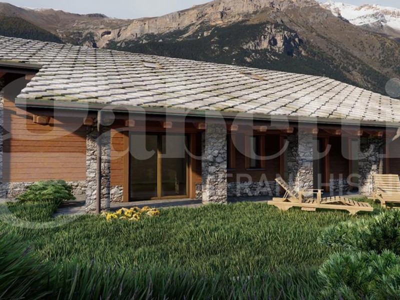 In Baita di nuova costruzione, realizzata in tipico stile montano, con tetto in lose e esterni in legno e pietra,