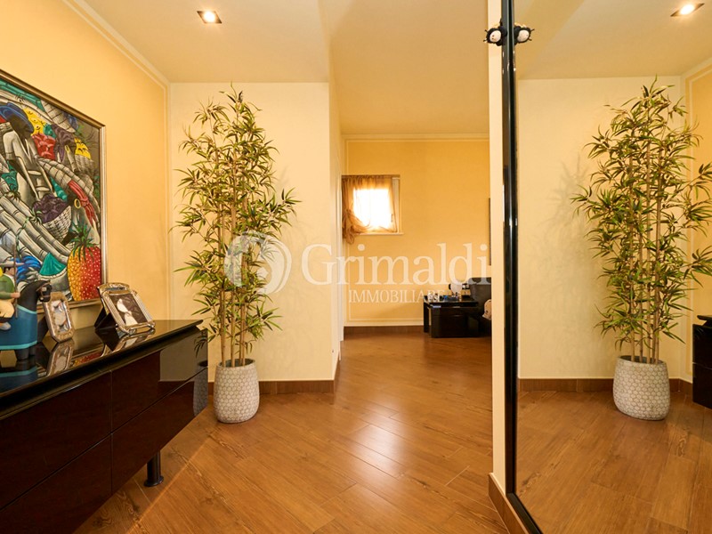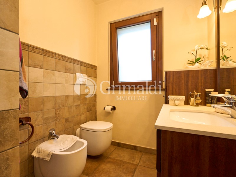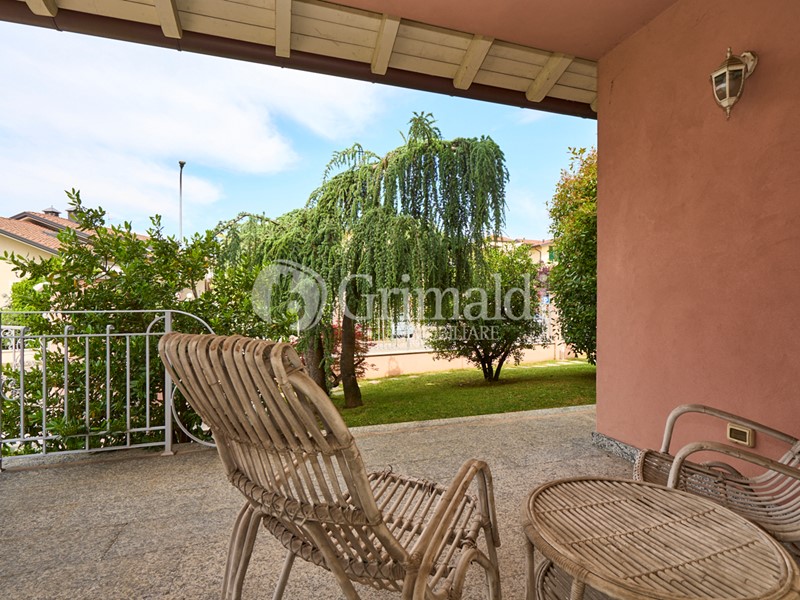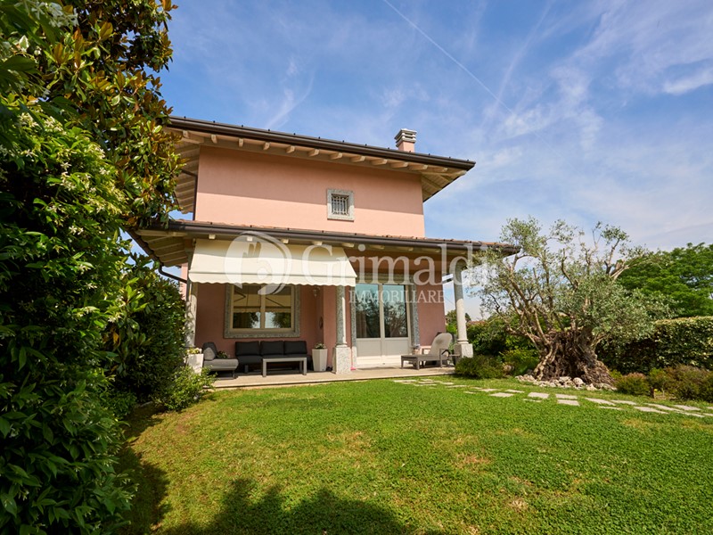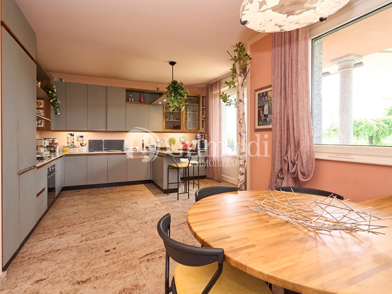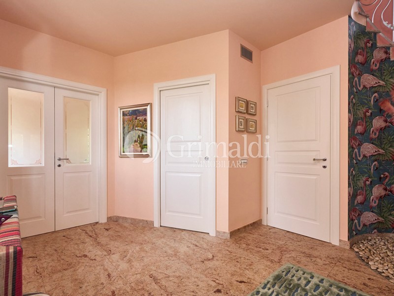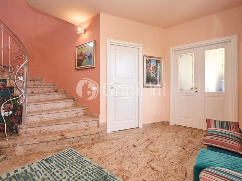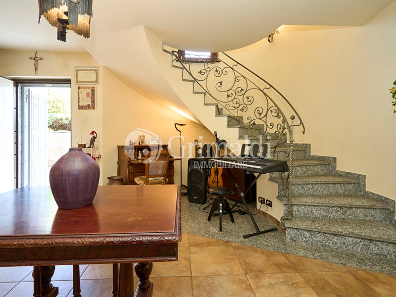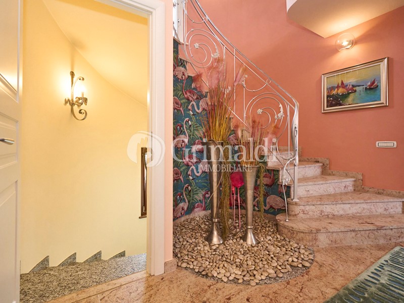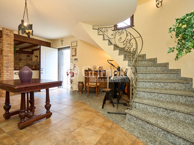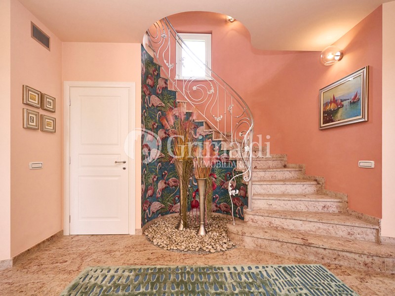 Un elegante ingresso, valorizzato da una scala elicoidale in ferro battuto, ci permette di accedere alla zona giorno che occupa l'intero piano terra dove troviamo un ampio e luminoso soggiorno, ideale per accogliere familiari e amici, e per trascorrere momenti di relax, una grande cucina abitabile, un bagno ospiti e un locale di servizio/guardaroba. Da tutti i locali del piano terra è possibile accedere ad un patio attrezzato, ideale per pranzi e cene all'aperto, circondato da alberi ad alto fusto che garantiscono privacy e ombra.