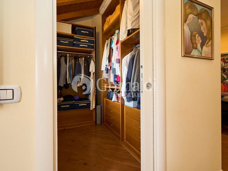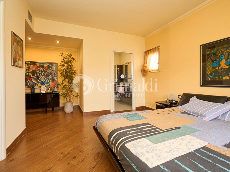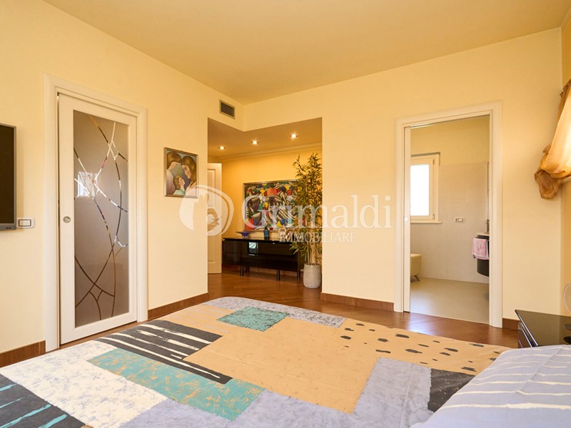 La camera matrimoniale occupa l'intera ala est del piano. Da un ingresso siamo accompagnati alla master room con cabina armadio e bagno padronale.