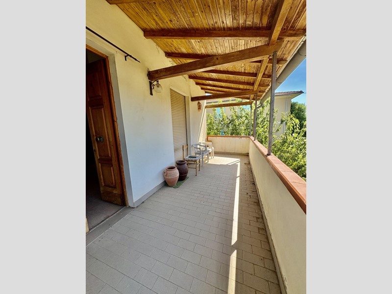 L’esterno è circondato da un ampio giardino esclusivo, in parte piantumato con olivi, ideale per produrre il proprio olio di qualità. La proprietà gode di una splendida vista sulla campagna circostante, rendendola un’oasi di tranquillità e bellezza naturale.