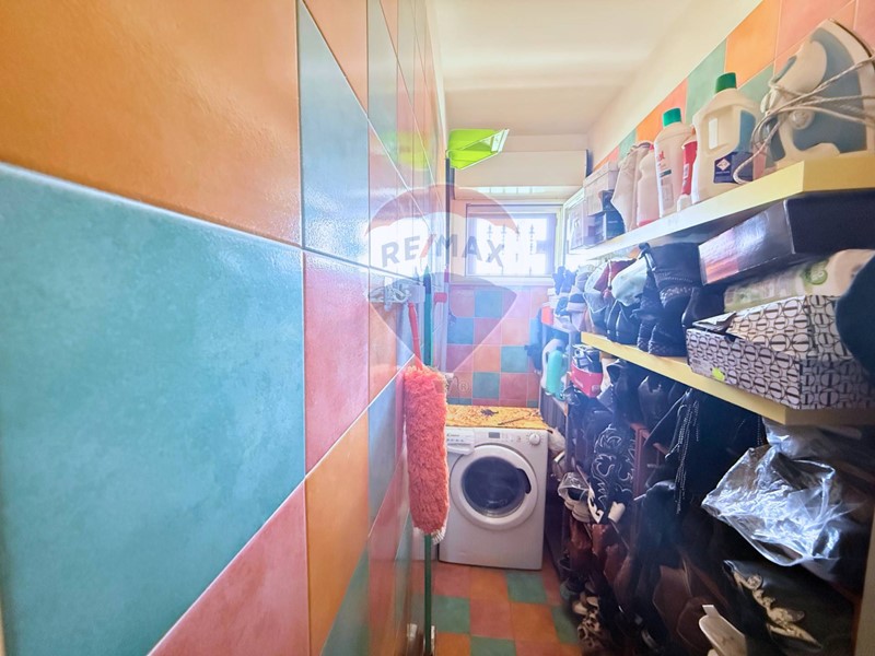 E poi incontriamo un bagno finestrato con rivestimento in mosaico e box doccia, un ripostiglio, sempre con punto luce, che può divenire tranquillamente un bagno di servizio ed infine unampia e luminosa camera da letto di ottime dimensioni.
