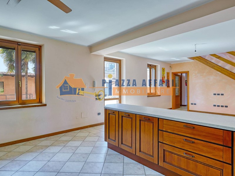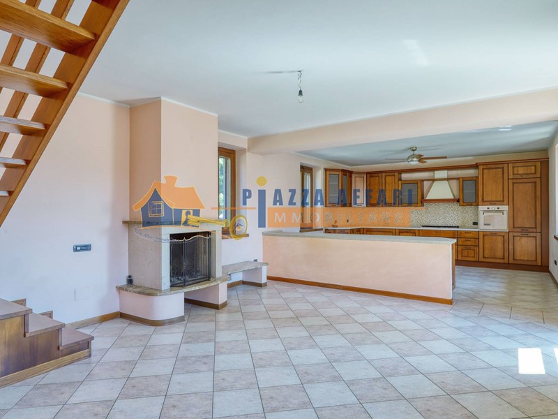 Si accede alla proprietà da un comodo ingresso carraio comune, che conduce al portoncino d'ingresso. Una volta varcato, ad accogliervi c'è un disimpegno ben organizzato, completo di una pratica armadiatura. Il cuore pulsante dell'abitazione è senza dubbio l'ampia zona giorno: un unico, grande ambiente con cucina a vista e camino, perfetto per vivere momenti conviviali in famiglia o con gli amici.