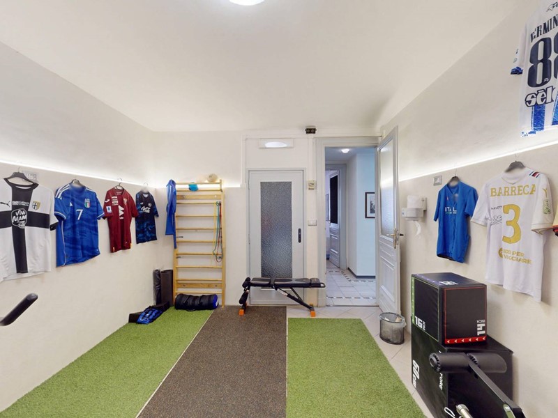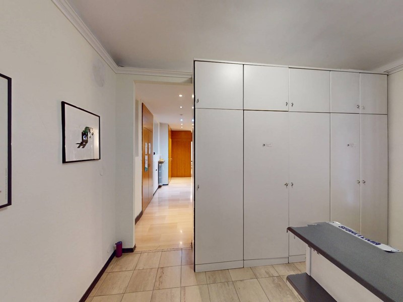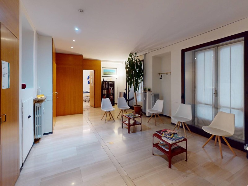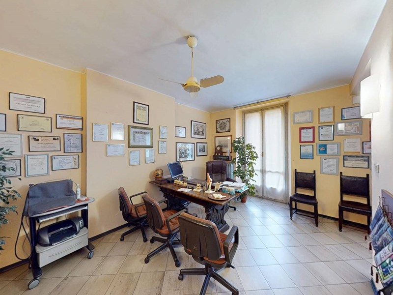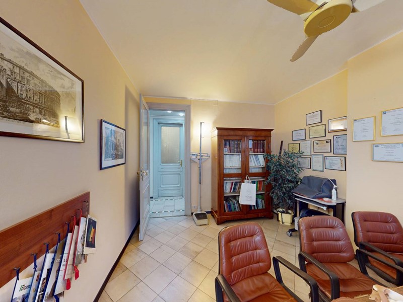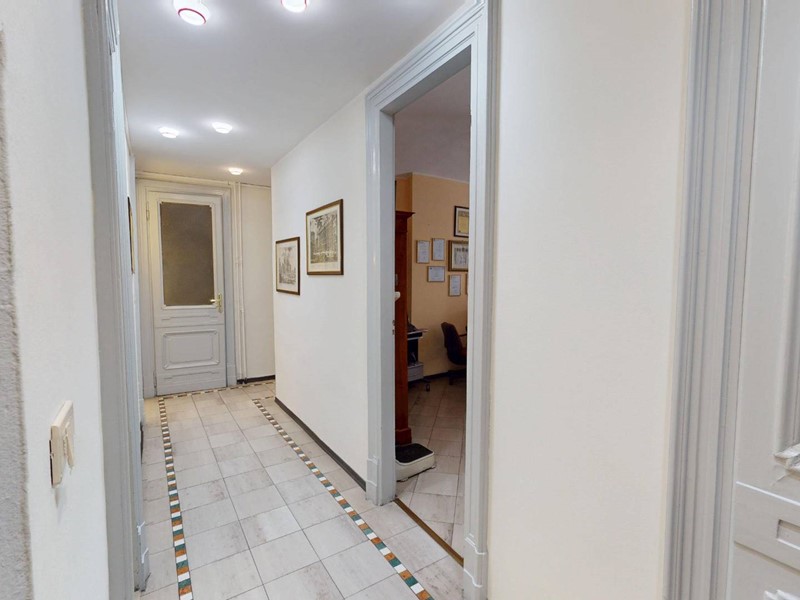 L'immobile, in ottimo stato interno, è composto da: ingresso su disimpegno che accompagna nei vari ambienti, nove locali, un ripostiglio e tre bagni.