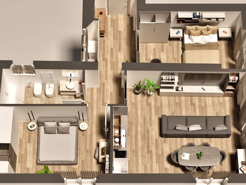 Si possono ancora scegliere le finiture interne: pavimenti, rivestimenti, ecc...