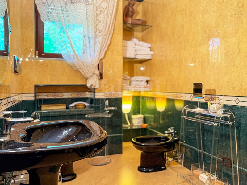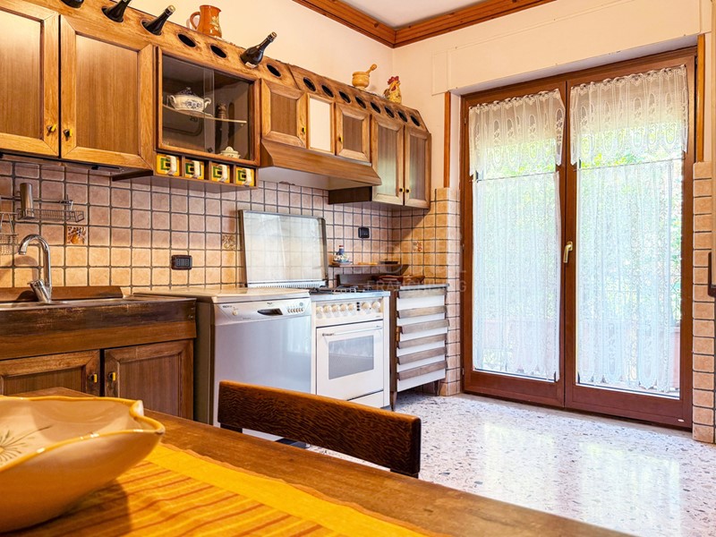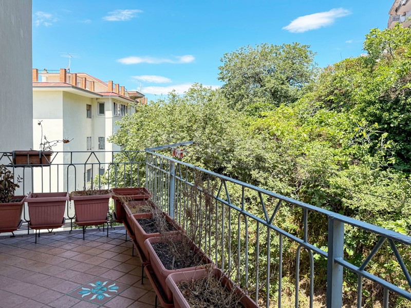 Sul lato opposto, un secondo balcone, accessibile dalla cucina, regala un affaccio più riservato, immerso nel verde circostante: uno spazio intimo, perfetto per colazioni lente o per staccare dal ritmo cittadino.