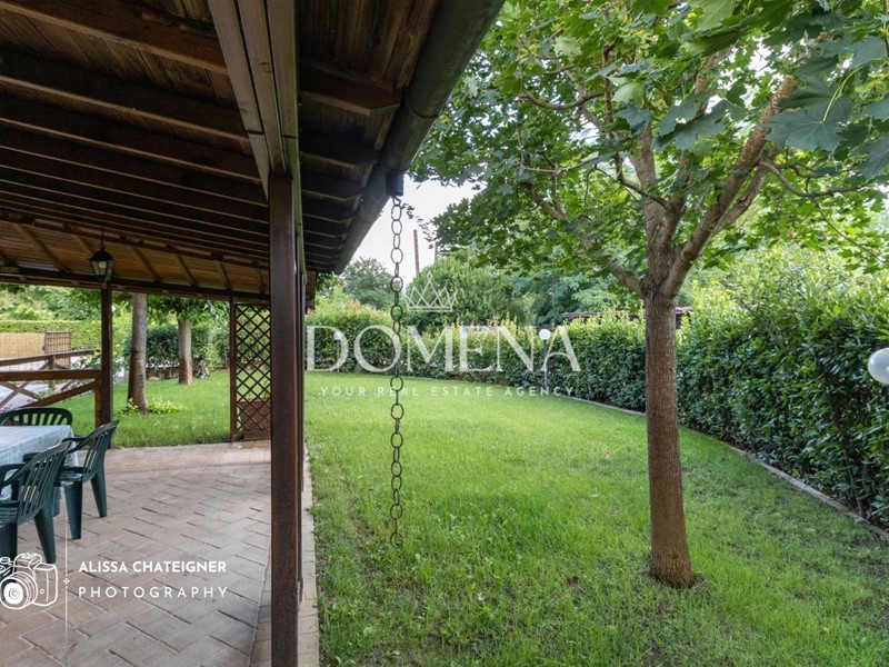 Libera su 3 lati e dotata di 2 ingressi indipendenti, la casa è avvolta da un ampio giardino privato, dove il verde abbraccia ogni angolo con dolcezza. Un’elegante pergola regala lo spazio ideale per cene sotto le stelle o pranzi in compagnia, mentre il forno a legna invita a serate di pizza e risate con amici e famiglia.