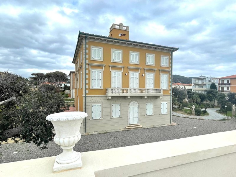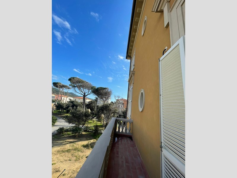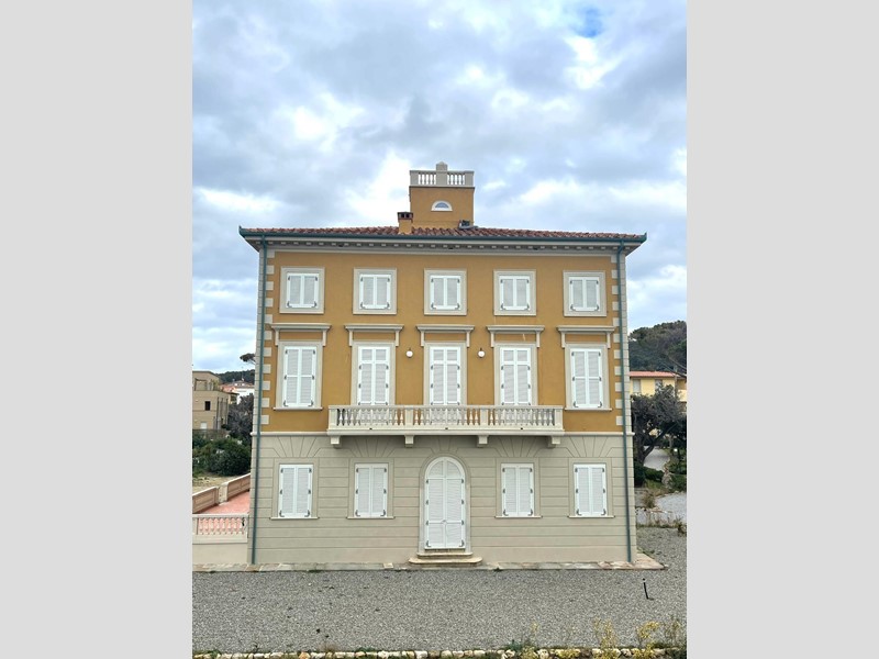 Antignano  Mare - Via T. Pendola: In villa antica, appartamento  nuovo con rifiniture di lusso e affreschi. Piano primo con ascensore, ampio ingresso, sala con angolo cottura, 1 camera matrimoniale, 1 studio, ripostiglio, balcone e garage.  Giardino e scesa al mare condominiale. T. autonomo.  Vicinanze Quercianella-Castiglioncello-Borgheri.