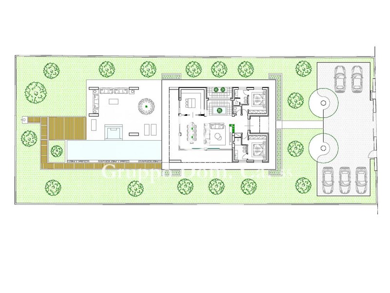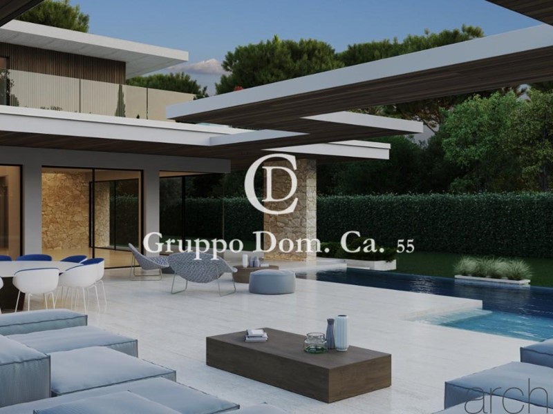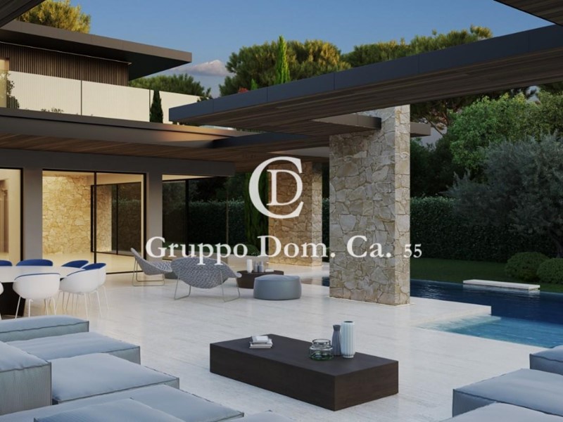 A soli 1 km dal mare, elegante villa immersa nel verde, con ampio giardino di oltre 1.270 mq e splendida piscina di 60 mq, perfettamente integrata nel contesto paesaggistico.