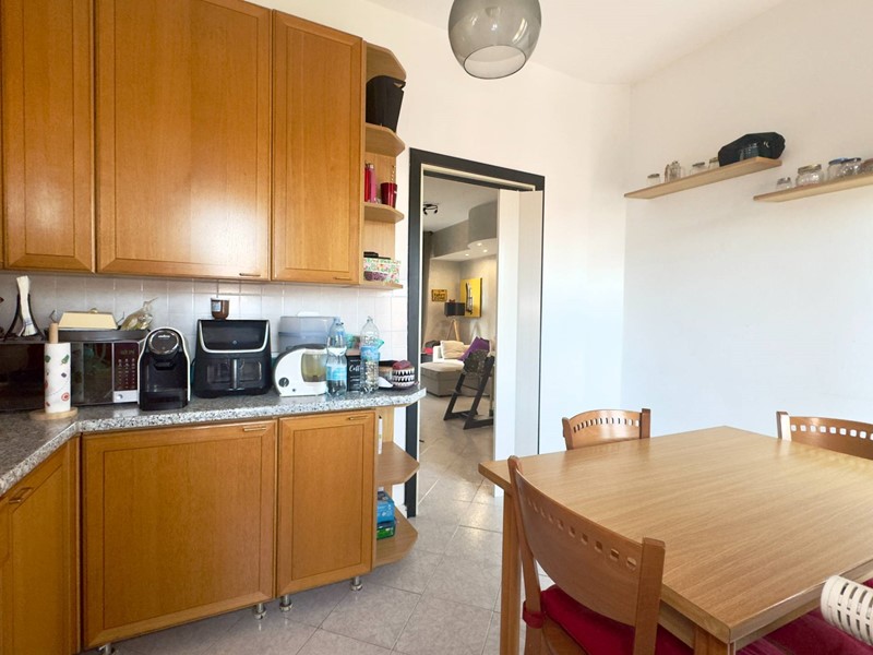 Labitazione è attualmente divisa da un lungo disimpegno che collega i vari ambienti, entrando sulla destra troviamo il cuore della casa, il soggiorno, ampio e lineare dotato di un balcone con affaccio esterno. Proseguendo abbiamo la cucina abitabile composta da due spazi collegati, un piccolo angolo cottura e la zona pranzo più ampia, dotata anchessa di un balcone con affaccio interno, adiacente abbiamo la spaziosa e luminosa camera da letto ed infine il bagno finestrato, dotato di vasca e cabina doccia.