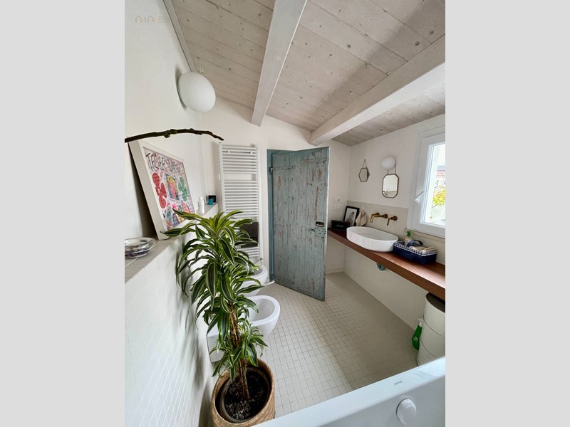 Si sviluppa su 4 piani per un totale di 120 mq con due entrate e grande terrazzo all'ultimo piano. La casa è così disposta: ingresso al piano terra su corridoio, camera/studio con altra porta d'entrata e piccolo bagno con la lavatrice; camera, cameretta e secondo bagno al primo piano; grande soggiorno open space con cucina a vista con penisola al secondo piano, bagno finestrato con vasca e grande terrazzo panoramico al terzo e ultimo piano.