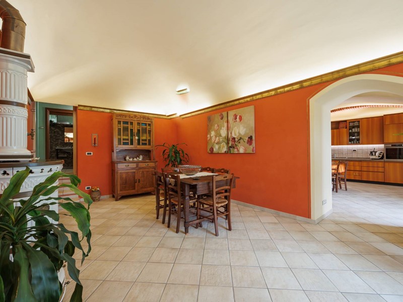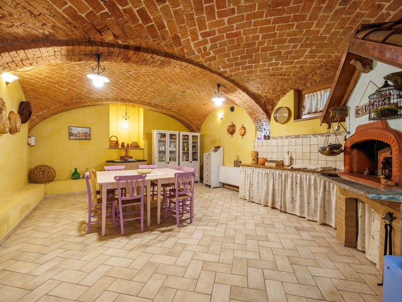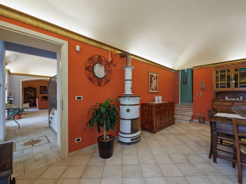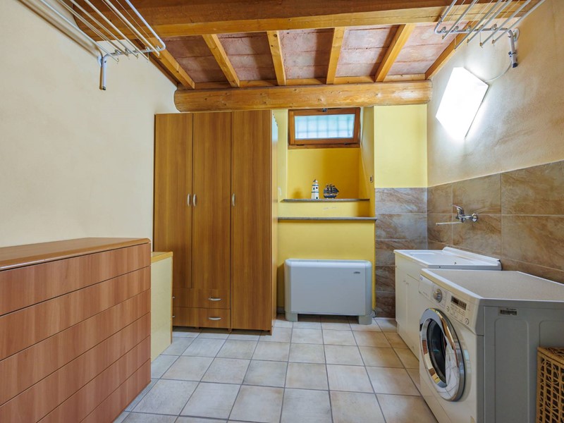 L'immobile è così composto: al piano terra salone doppio con camino, sala da pranzo, ampia cucina e bagno con locale lavanderia; tramite porta interna si accede alla tavernetta con forno in muratura.